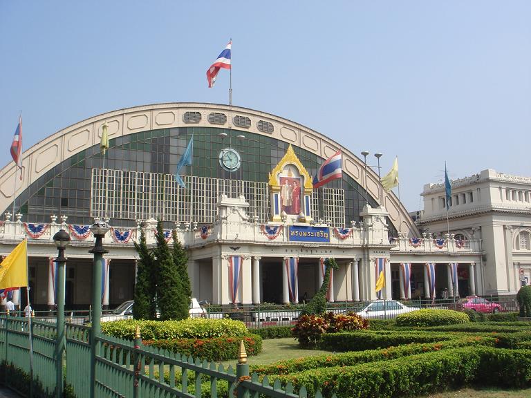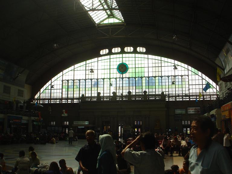 右下は立派な外観のフアランポーン駅、左下は薄暗い駅構内。