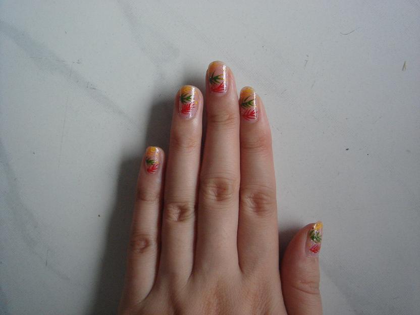 一時帰国する前にやってみたネイルアート。 なぜかジャマイカンカラー。