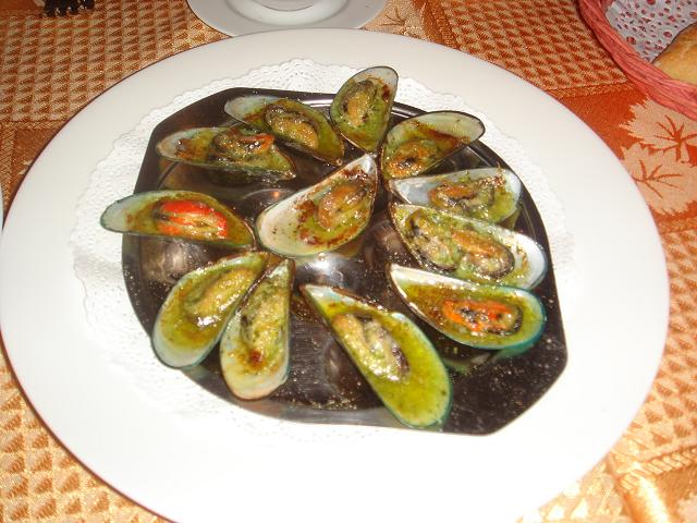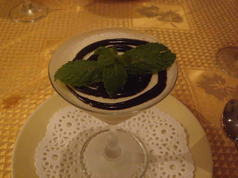 下はムール貝のバター焼きとミルクムースチョコレートソースがけです。