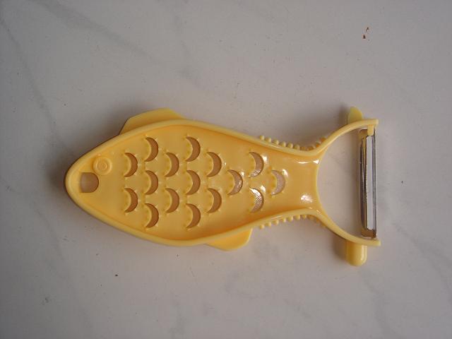 皮むき器の持ち手は魚型でおろし金風になっていて、すりおろし生姜ができる!