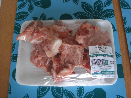 次に目に入ったのが、なぜかスープ用豚骨。安い。13バーツ。