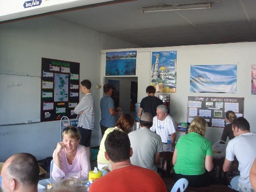 バンの乗客は西洋人のみ。私達2人は巨体西洋人達に埋もれて座り、カロンビーチを過ぎた頃にはすっかり熟睡していました。気づいたらもうタブラム港にあるダイブショップのオフィスでした。