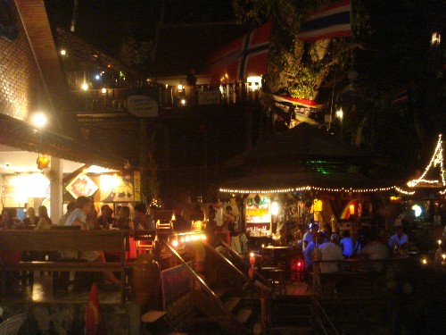 両サイドに店が集まっています。私達はホテルから近い方の南側(Mom Tri's Villaのほう)へ。