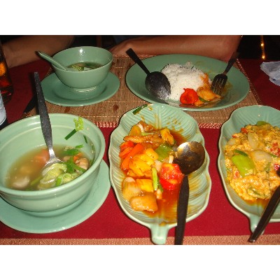 ここのレストランがまたおいしい! バンコクで散々タイ料理を食べ尽くしている私達はタイ人でなくても味の違いくらいは分かります。